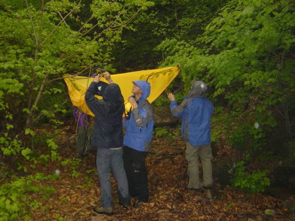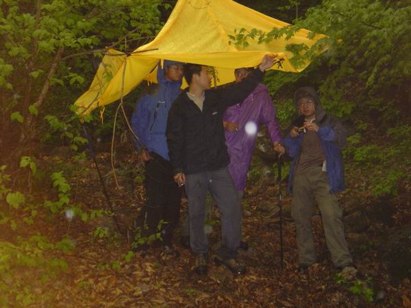 可是,在他们为我们为自己忙活完了之后,大家也都充分的认识到了当时是绝对没有登顶帽盔山的可能了。。。帽盔山的险峻,天气的恶劣,都是不言而喻的;而且我们还是负重登山的。做出下撤的抉择是艰难的,尽管每个人都不舍得放弃,可是没有选择的余地。对于我,向来只是在乎这样一群朋友,至于登顶对我已经不是很重要了。安全始终都是第一位的。