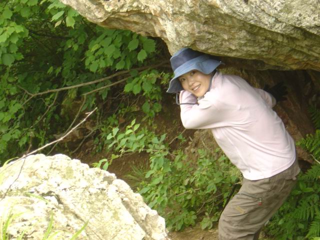 ——从没想到自己我行我素的一句话,会招来那么多是非。还是不喜欢多解释什么,明白我的终究是明白我的,不懂我的解释再多也多余。不管怎样,我还是喜欢和自己喜欢的朋友们一起腐败,自虐。。应几个朋友的再三要求和开导,做下活动总结&游记,虽然我这个召集者只是挂名而已(一起出去的每个人都做了力所能及的工作帮助我),但还是要有始有终。回来面对老赵大哥的表扬,我真得无话可说,只是有些惭愧,希望以后我会成为一个成熟的领队,呵呵。 几经周折,终于和几个喜欢的朋友上路了,开始了我们向往已久的天门山之旅。遗憾的是,邀请了几位很喜欢的朋友没有同行,缘分大概就是这样了,是你的终究会是你的。这一路走来,错过的可能不只是风景。 还好,很少有什么能影响我周末出行的好心情,尤其这次有两个新朋友加入,行者和维生素。由于奔跑兄因为工作原因临时退出,临时也在拉不到人了:(原本8个人的形成就变成了7个。 一路上很顺畅,zy的驾车技术也很好,8点40多我们出了高阳高速路收费口,一路经庄河仙人洞,塔领,拐进了天门山景区。为了找个稳妥地停车地,zy和维生素跑前跑后,这期间老赵大哥和行者去看看附近有没有合适的露营地。因为天已经很晚了,大家也很疲倦,如果可以,考虑就在附近露营了~等着他们回来的时候,生平第二次看到了萤火虫哦^o^虽然在夜深人静的野外,亮闪闪的东西在空中飘过有点恐怖,不过还是很喜欢这样可爱的小精灵。 终于车停好了,我们决定还是到原定的露营地点,这样第二天也可以不再动地方了。夜晚的天门山地区湿气很重,很像毛毛雨。大家带着头灯,一路摸黑涉水走在去年我曾走过两次的小路。似曾相识的感觉已经找不到了,今年雨水太多,小路两边的植被非常茂密。终于走到了一处很平坦的草地,已经12点多了吧,大家谁都不想再走了。于是安营扎寨,准备睡觉啦。最近睡眠严重不足,我几乎是倒下去就睡了,外面竟然还有三位腐败的弟兄下半夜开始喝酒吃烧鸡,佩服啊。。。大概是在大家都进了帐篷准备睡觉的时候,天下起了雨。反正我基本已经在和周公约会了,不记得那么多了。 周六早,是被吵吵嚷嚷的声音吵醒的,大家好像都起床了。。。天啊,,叶绿素竟然已经喝光了三罐啤酒两罐可乐,5555555555555,那是维生素特地给俺带地!:( 天阴,没有太阳,雾气也很重。和13在小河里洗脸,很喜欢这样回归自然的感觉,周围群山围绕,真想在这里住一段日子,奢望阿~~~13做的早餐还是那么的诱人,大家狼吞虎咽的吃过了之后,决定去爬山。只有zy好懒哦,要求留下来看家——其实呢,他是想通过老乡打听一下那里的花姑娘行情~ 由行者带路,13,我,老赵大哥,叶绿素和维生素一行6人就出发去爬露营地后面的山。下过雨,山路很滑,还好山不是很高。刚上路,行者发现了一条小蛇,好可爱哦。只有一根筷子的长短,竟然毫不畏惧,张着大嘴想咬行者拿着的小树枝。很可惜,因为去年步云山的关系,我很害怕蛇宝宝的妈妈在附近,不敢靠近拍照,拍出来的pp也有点虚:(可真的是很喜欢这条蛇宝宝,只是还没有勇气带它一起回家当宠物。。 一路攀爬,行者不知道是因为体重的关系,还是平时锻炼的关系,走路很轻巧,不费力也几乎不留下什么脚印就走得好快。剩下我们就只好紧紧跟着了,哎,行者兄,下次记得照顾照顾我们这群老弱病残哦~~攀过一块蛮大的岩石之后,就登顶了,哈哈。这个时候手机的信号来了,。看到奔跑兄因为加班没fb成气的吐血,好歹也安慰一下俺了~~~会当凌绝顶,一览众山小。呵呵,虽然不是最高峰,可是还是很舒服哦,就是雾气太重。极度恐高,我依着一棵松树站在一块大石头上,看着大家四处散着,到处走动,可我就是害怕。。。看着一路帮我们背包的两素兄,哎,顿生敬意啊:) 下山的时候,大家决定不走回头路了,呵呵,行者和维生素带路,我们沿着山北坡的小路下山了,想从北坡绕回去。在半山腰竟然再次看到了天女木兰,很喜欢这个只生长在某一海拔的物种。想带一株回来给妈妈看的,可惜,山路很滑,终于在走过一处比较比较湿滑地方时掉了,结果不幸被踩在了叶绿素的脚下。。。:( 走到山下,我才发现竟然回到了去年那个兽医带我们上山的那个地方了。和大家一起,到了小河边。发现行者已经半裸要下水了,哈哈。要不是因为初次出来,我是一定会等他下水拿走他的衣服,拍下饭票的。。。哎,做人还是要厚道哦。 再次走回了去年的露营地,感慨颇多,和13念叨着去年的老人,心里想着一去不复返的青春。时光匆匆,到最后留在身边的朋友能有几个。。 当大家返回露营地的时候发现,zy果然又是在和老乡侃大山。哎,今年不知道谁家的花姑娘遭殃~午饭过后,大家自由活动,zy,13,老赵大哥午睡;两素~行者三人去游泳了;555555555,俺不会游泳,也没有横渡选手陪俺玩,只好也午睡了。朦朦胧胧间,被三位凯旋而归的gg叫醒打扑克,嘿嘿,最终反败为胜。不过用bobo的话讲,俺这情场还是会一直失意下去了! 接下去好像就是晚饭,呵呵,反正除了吃还是吃~~可怜行者,好像出了豆腐干和竹笋就再什么能吃的了。看着他苗条的身材,让我这个羡慕,哎,减肥的代价太大,我只能顺其自然了:(晚饭过后,大家聊天,很舒服,我只是静静地听着,当然还在不停的吃喝。当zy他们去睡了的时候,行者点起了篝火,可是因为太潮,生火很费劲。在两素兄的配合下,还是点起来了:)四个人围坐